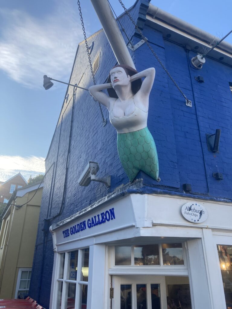 A maritime mermaid figurehead at the Golden Galleon – which regularly features in listings of Britain’s best fish and chip shops – in the Suffolk seaside town of Aldeburgh.