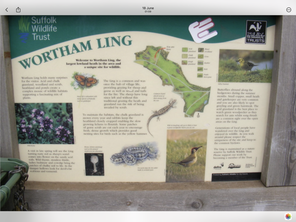 Suffolk Wildlife Trust’s interpretation board on Wortham Ling nature reserve in 2025.